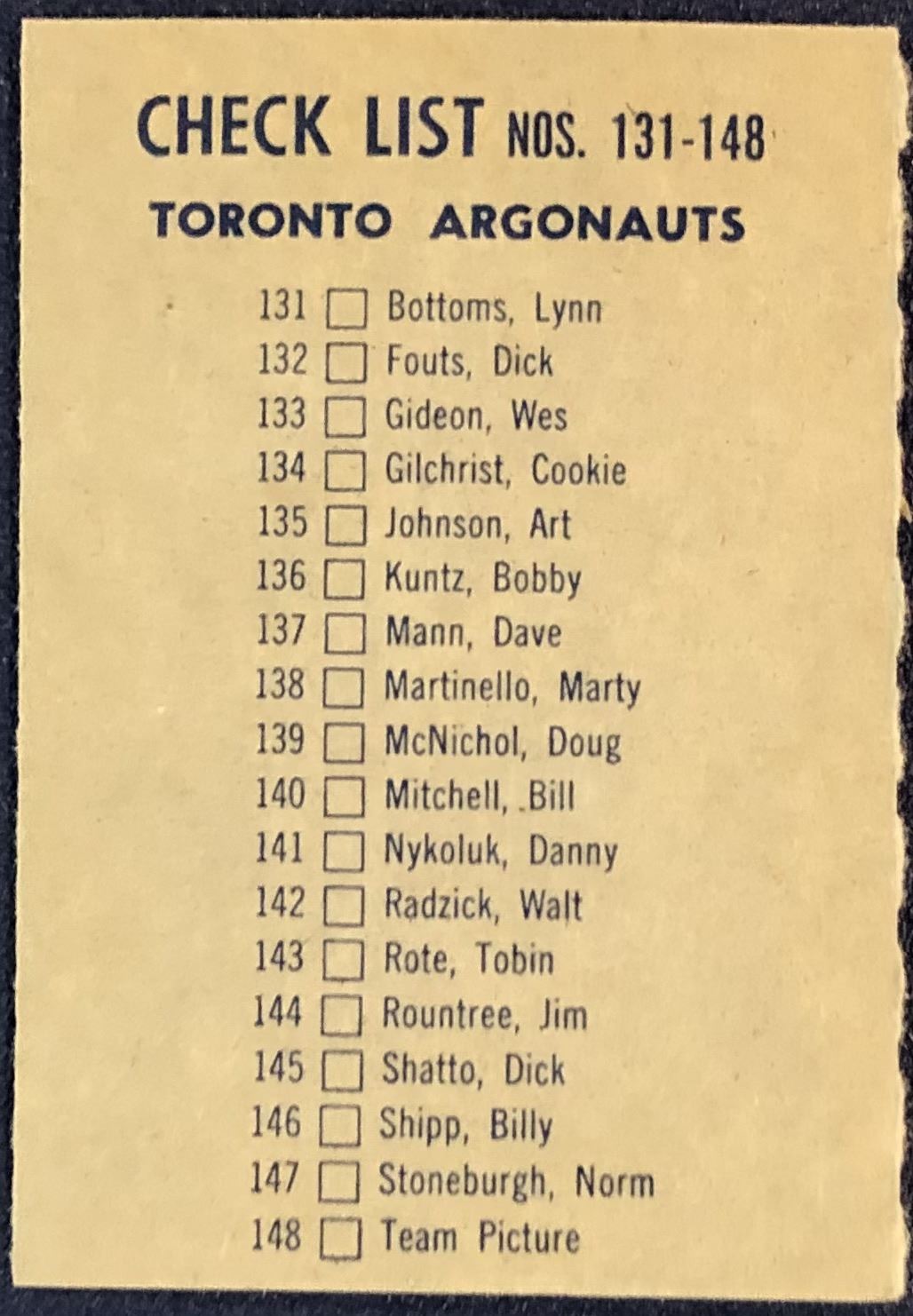 Lot 71 1962 O-PEE-CHEE CFL TORONTO ARGONAUTS