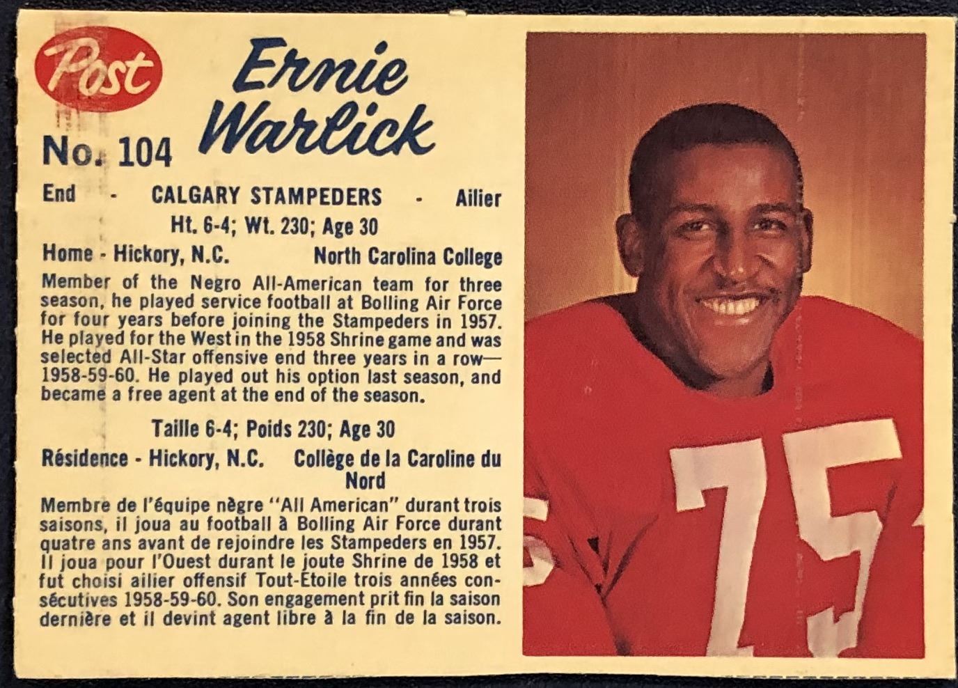 Lot 75 1962 POST CEREAL CFL ERNIE WARLICK