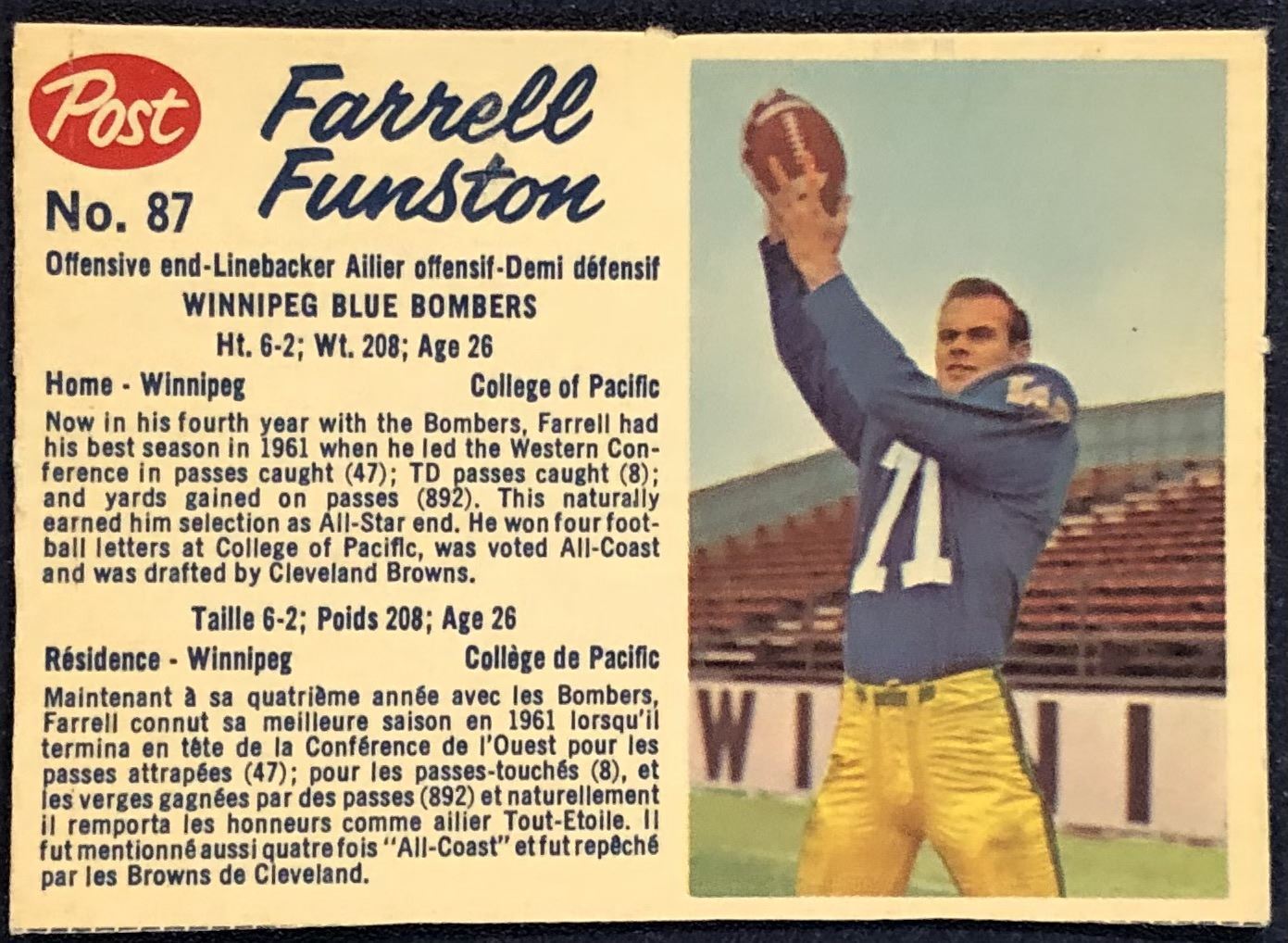 Lot 76 1962 POST CEREAL CFL FARRELL FUNSTON