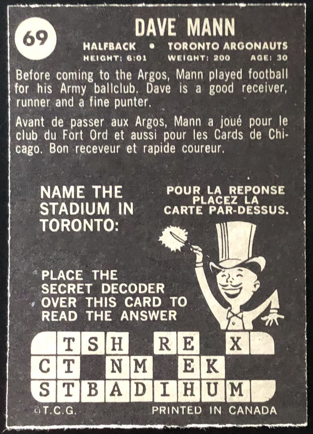 Lot 82 1964 O-PEE-CHEE CFL DAVE MANN (HOF)