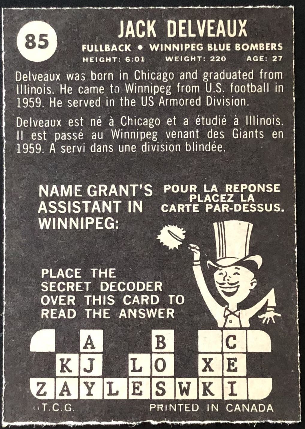 Lot 83 1964 O-PEE-CHEE CFL JACK DELVEAUX