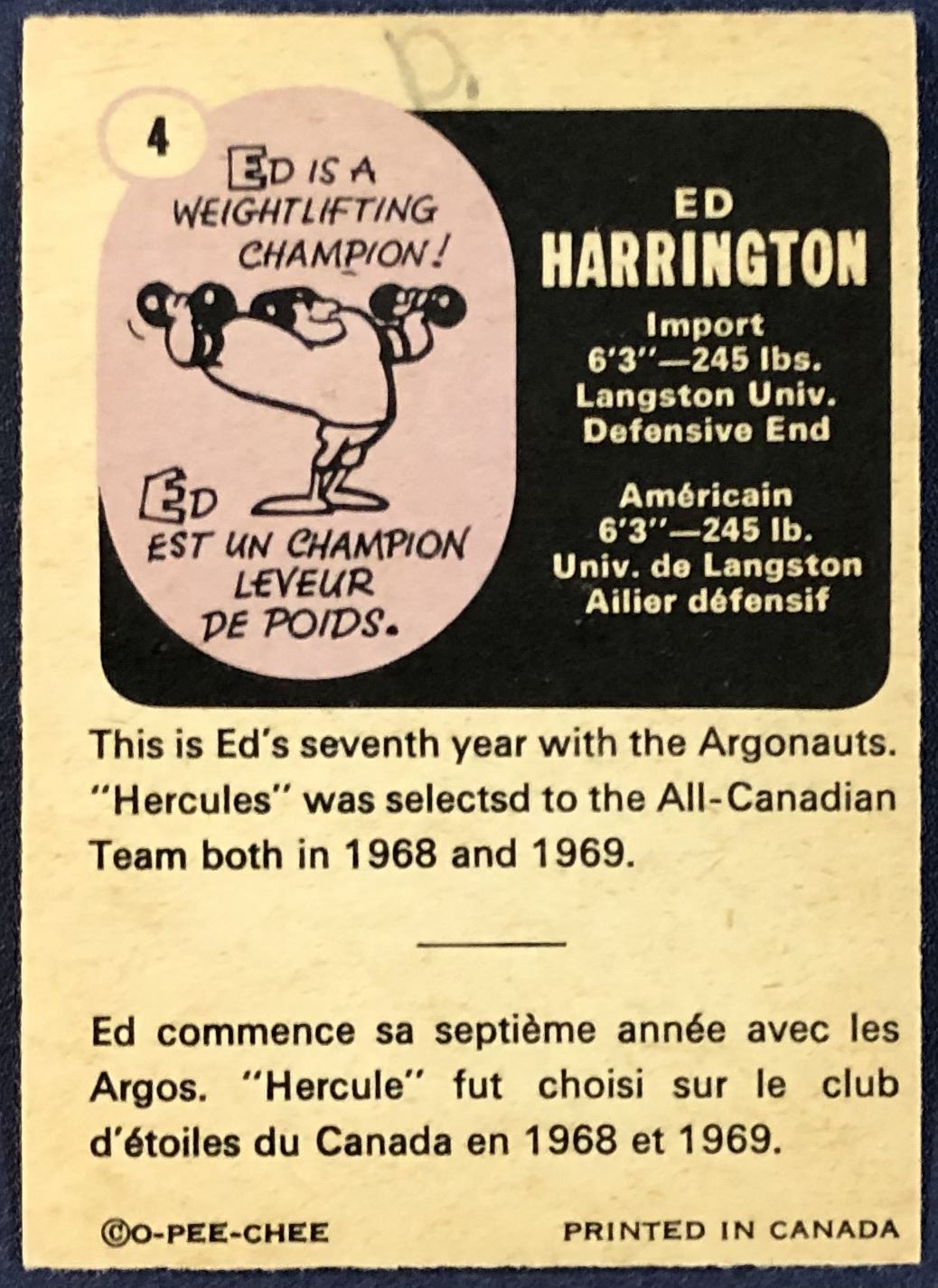 Lot 88 1971 O-PEE-CHEE CFL ED HARRINGTON