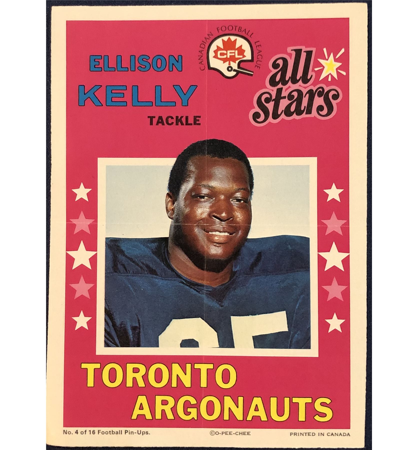 Lot 94 1971 O-PEE-CHEE CFL INSERT POSTER - ELLISON KELLY (HOF)