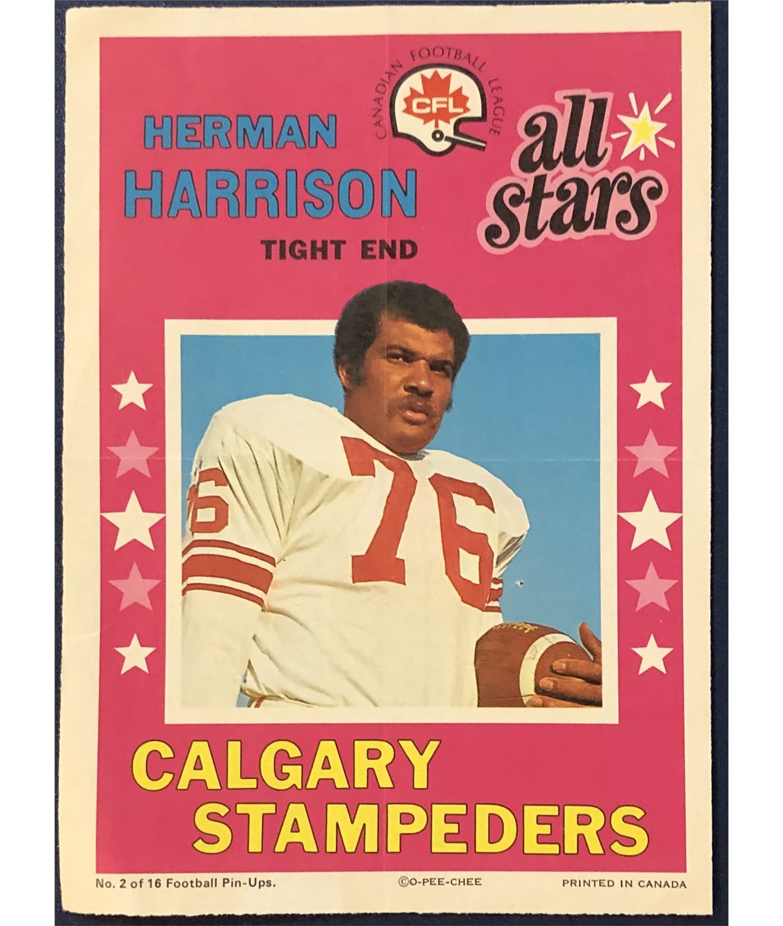 Lot 96 1971 O-PEE-CHEE CFL INSERT POSTER - HERMAN HARRISON (HOF)