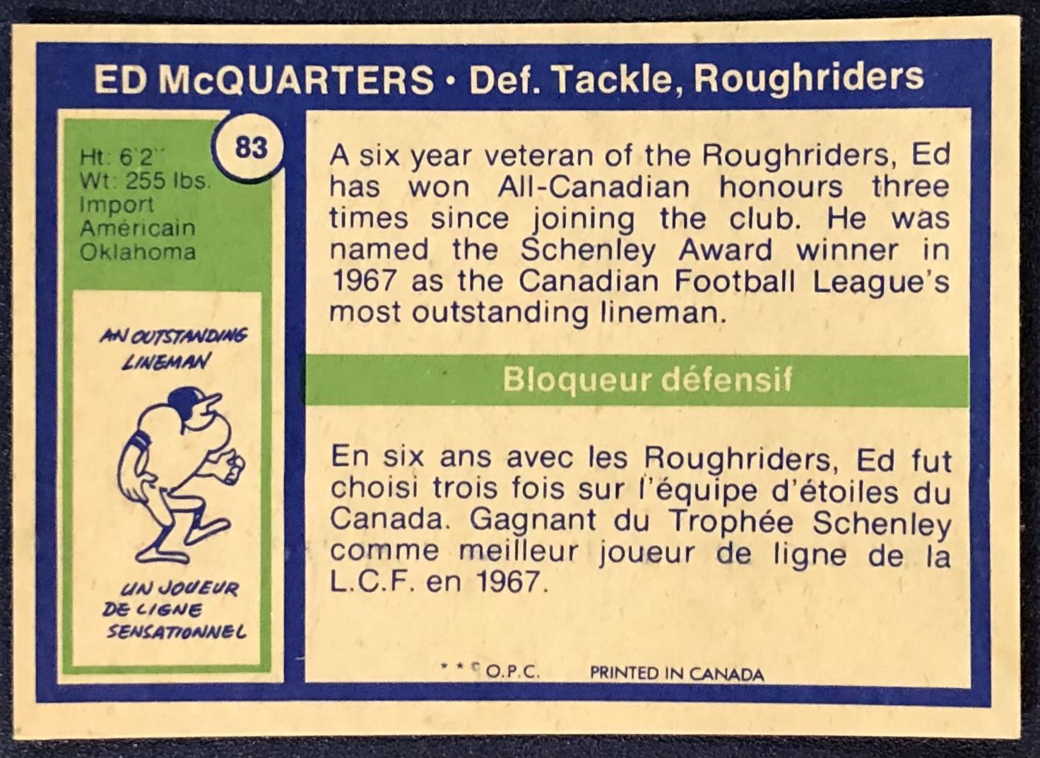 Lot 104 1972 O-PEE-CHEE CFL ED McQUARTERS (HOF)