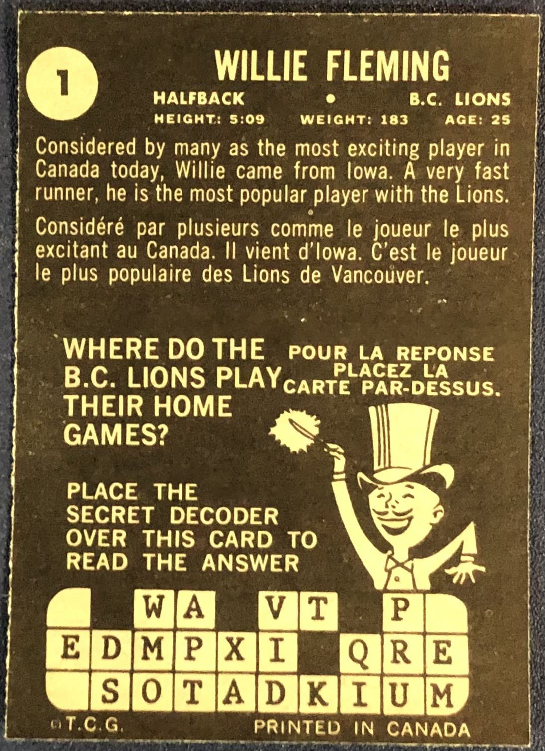 Lot 108 1974 O-PEE-CHEE CFL WILLIE FLEMING (HOF)