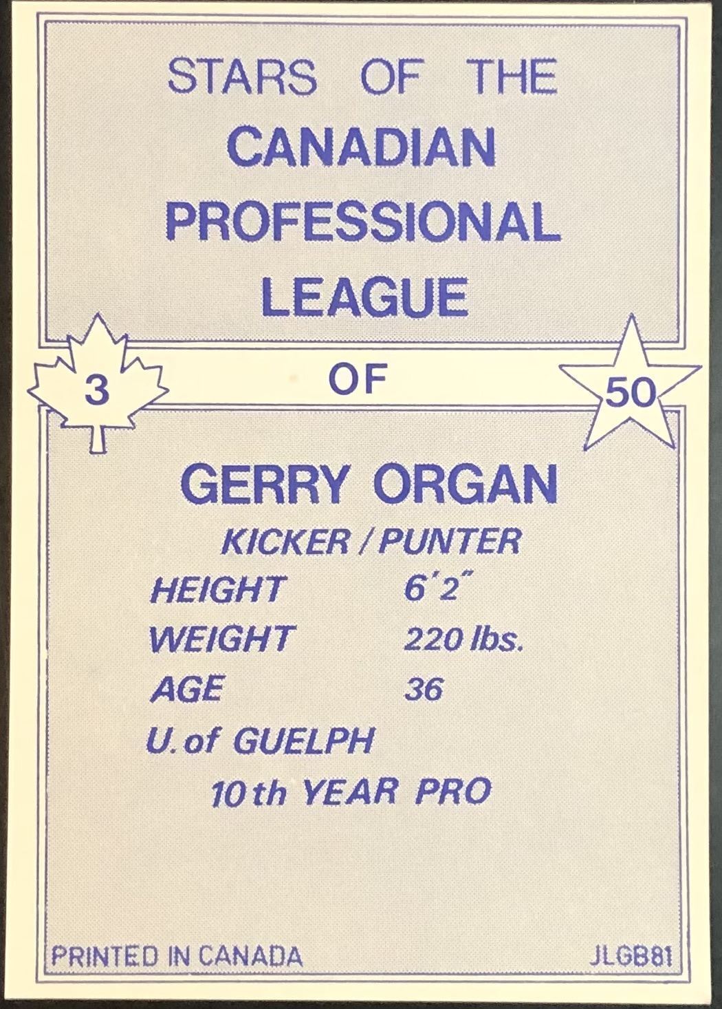 Lot 109 1981 JOGO CFL GERRY ORGAN (HOF)