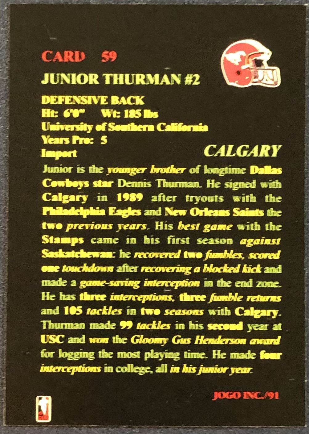 Lot 115 1991 JOGO CFL JUNIOR THURMAN