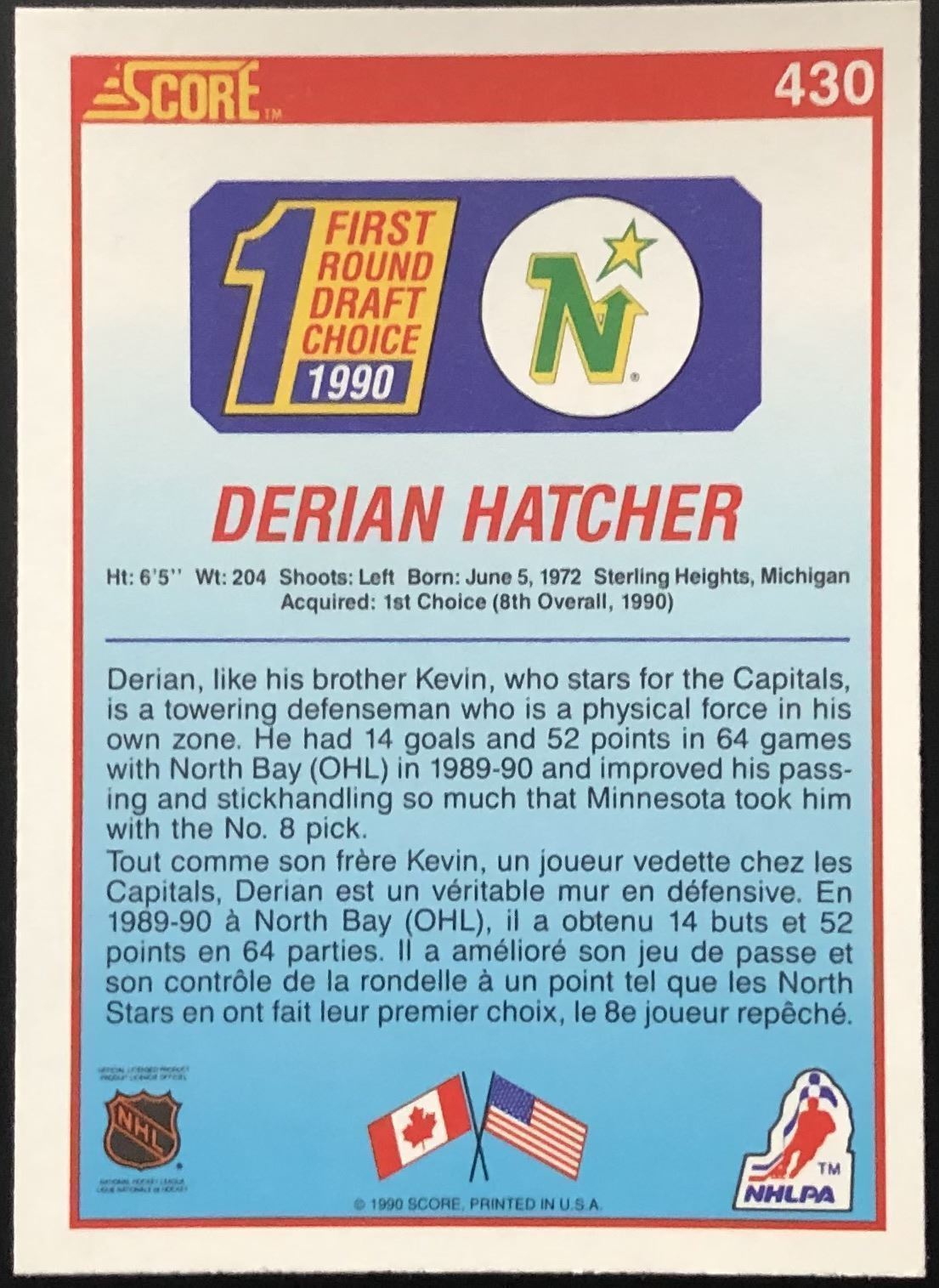 Lot 131 1990-91 SCORE DERIAN HATCHER ROOKIE CARD
