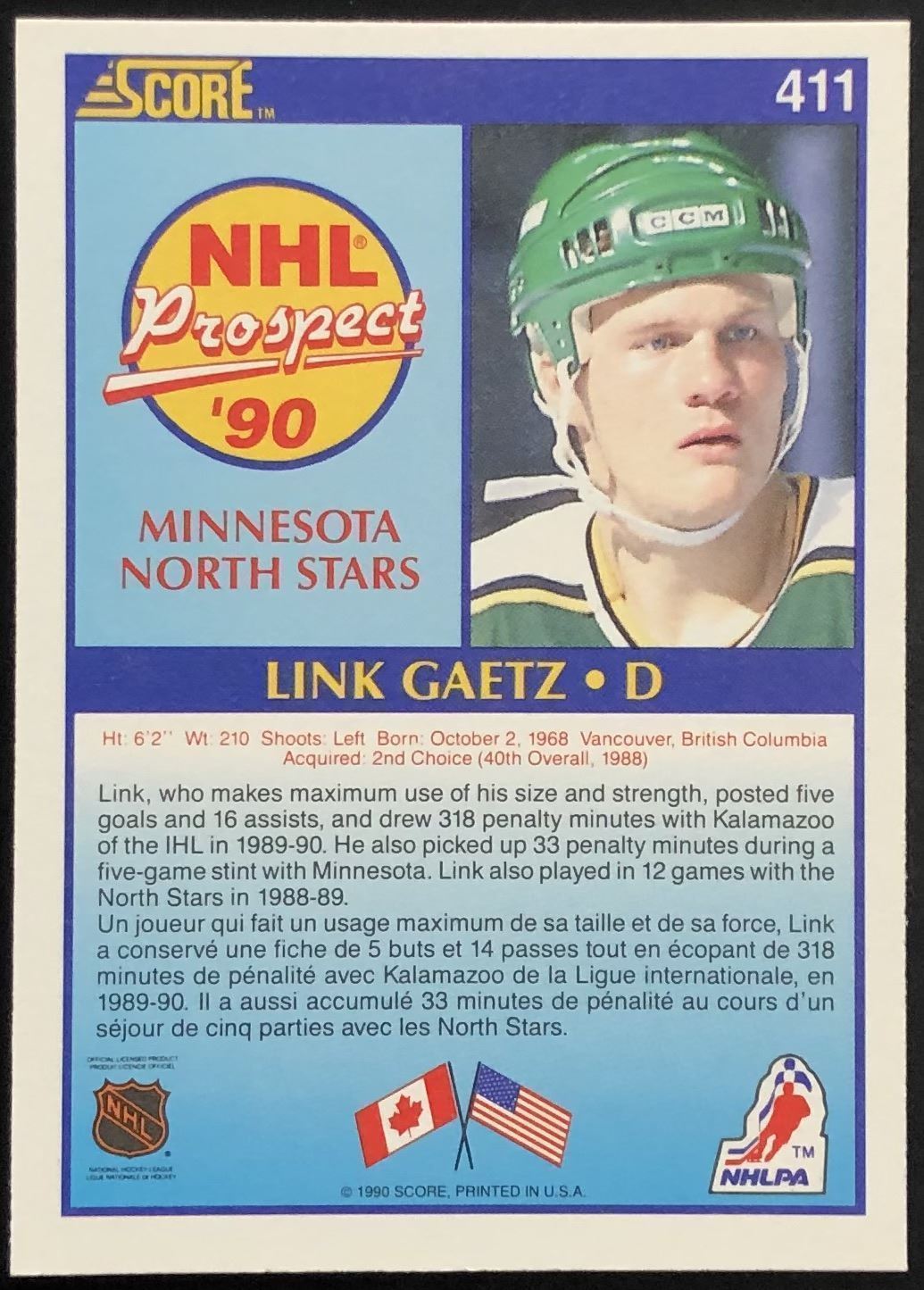 Lot 134 1990-91 SCORE LINK GAETZ ROOKIE CARD
