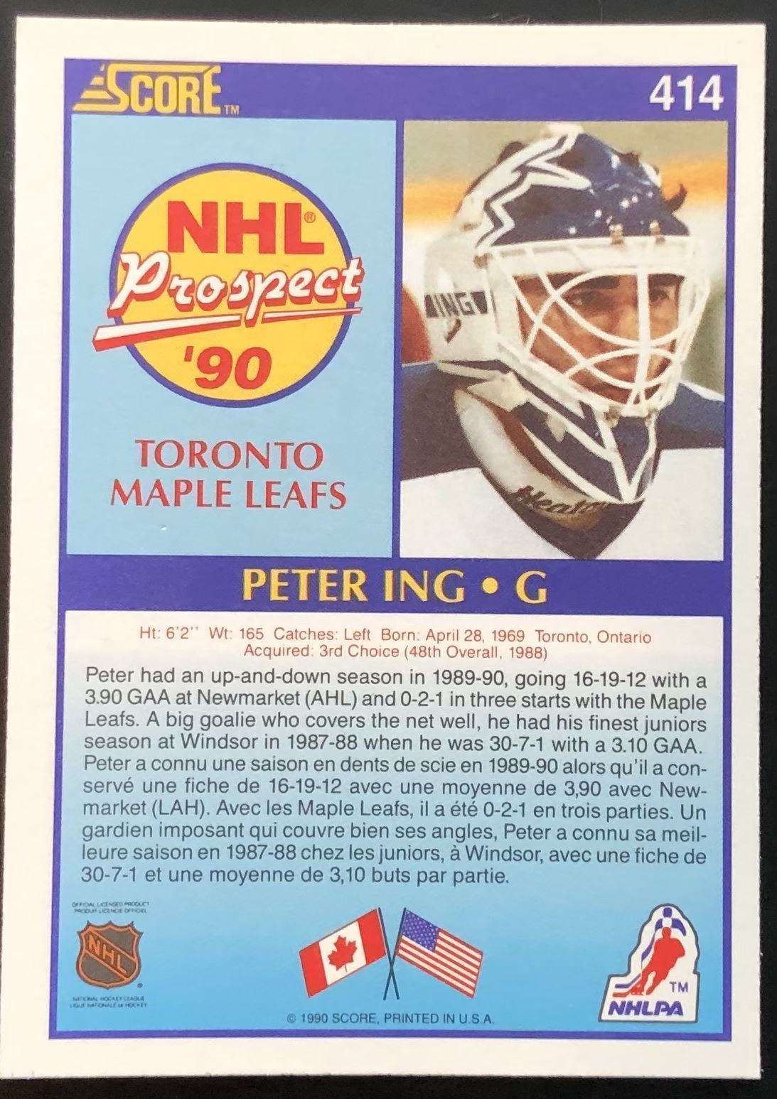 Lot 136 1990-91 SCORE PETER ING ROOKIE CARD
