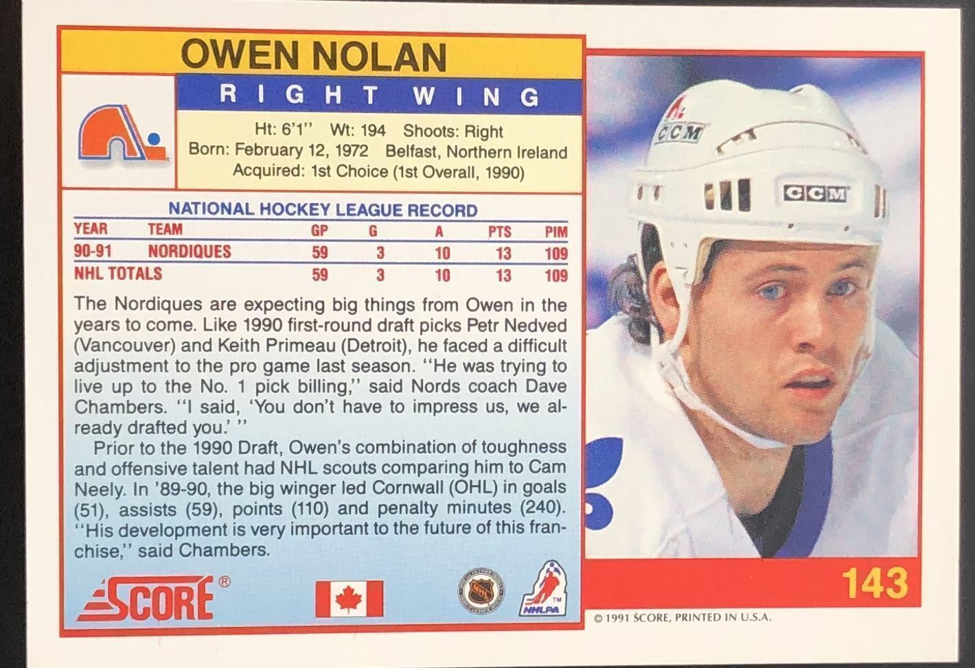Lot 158 1991-92 SCORE OWEN NOLAN ROOKIE CARD