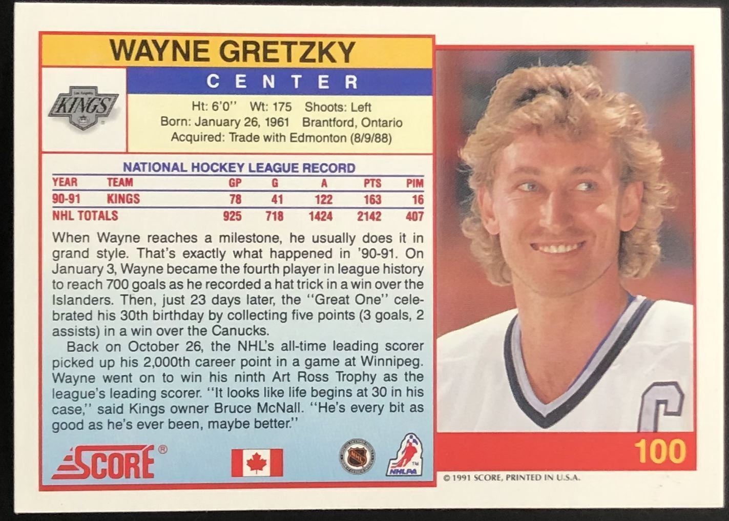 Lot 162 1991-92 SCORE WAYNE GRETZKY (HOF)