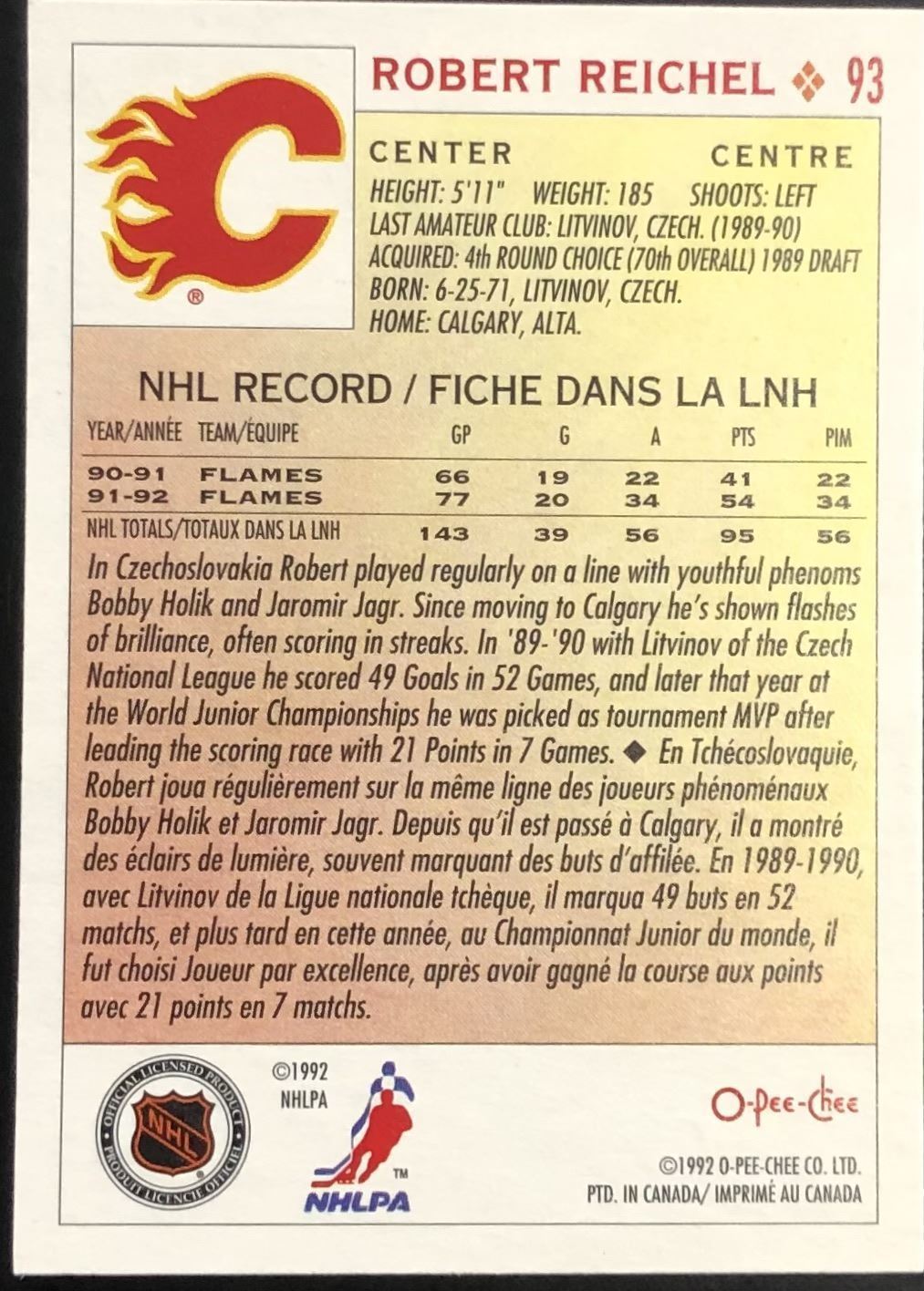 Lot 171 1992-93 O-PEE-CHEE ROBERT REICHEL