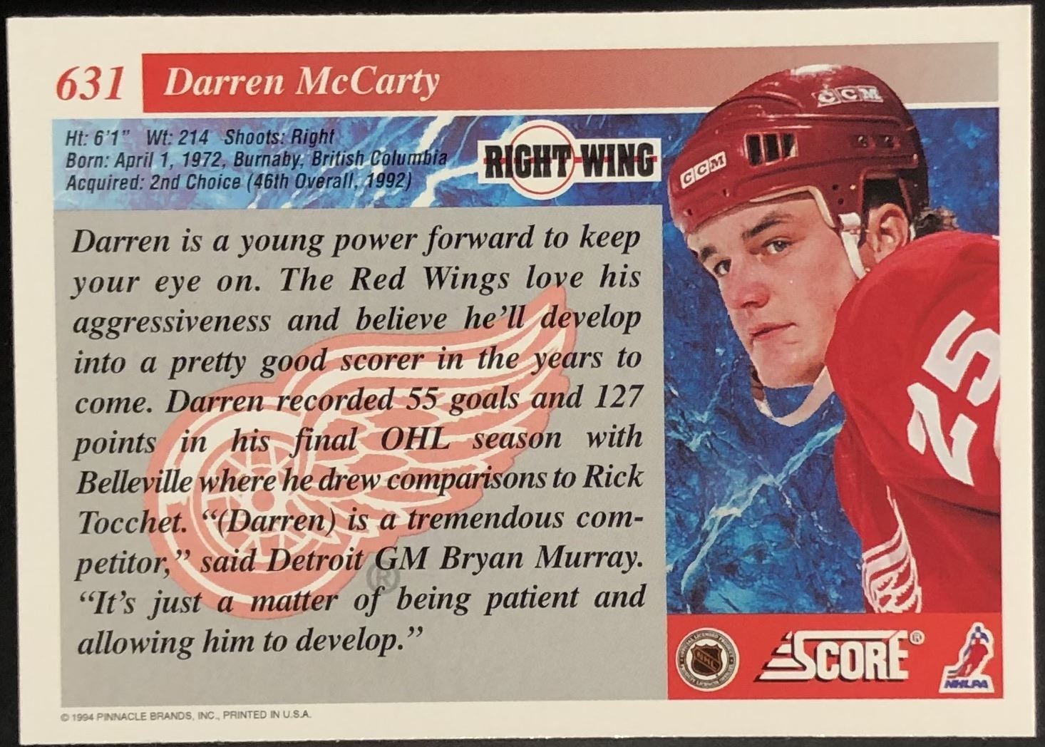 Lot 175 1992-93 SCORE DARREN McCARTY ROOKIE CARD