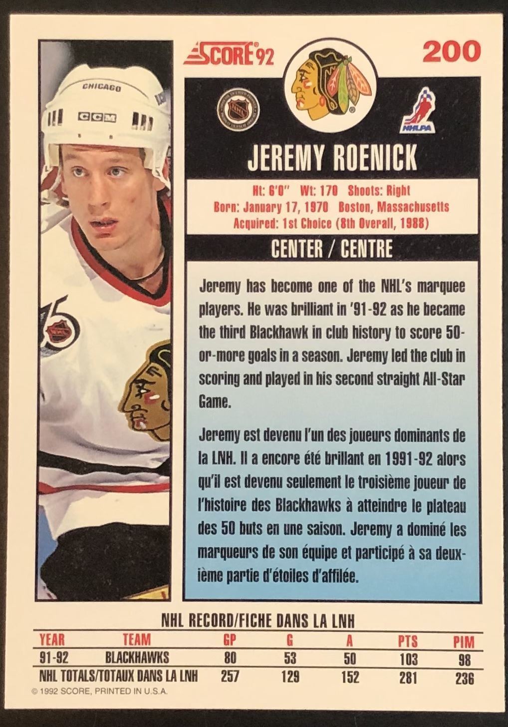 Lot 177 1992-93 SCORE JEREMY ROENICK (HOF)