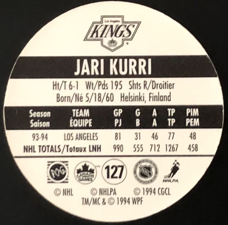 Lot 182 1994-95 7-ELEVEN NHL POGS - JARI KURRI (HOF)