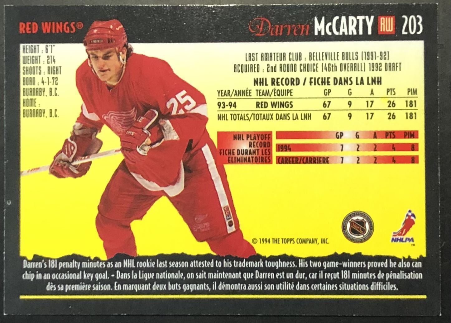 Lot 186 1994-95 O-PEE-CHEE PREMIER DARREN McCARTY ROOKIE CARD