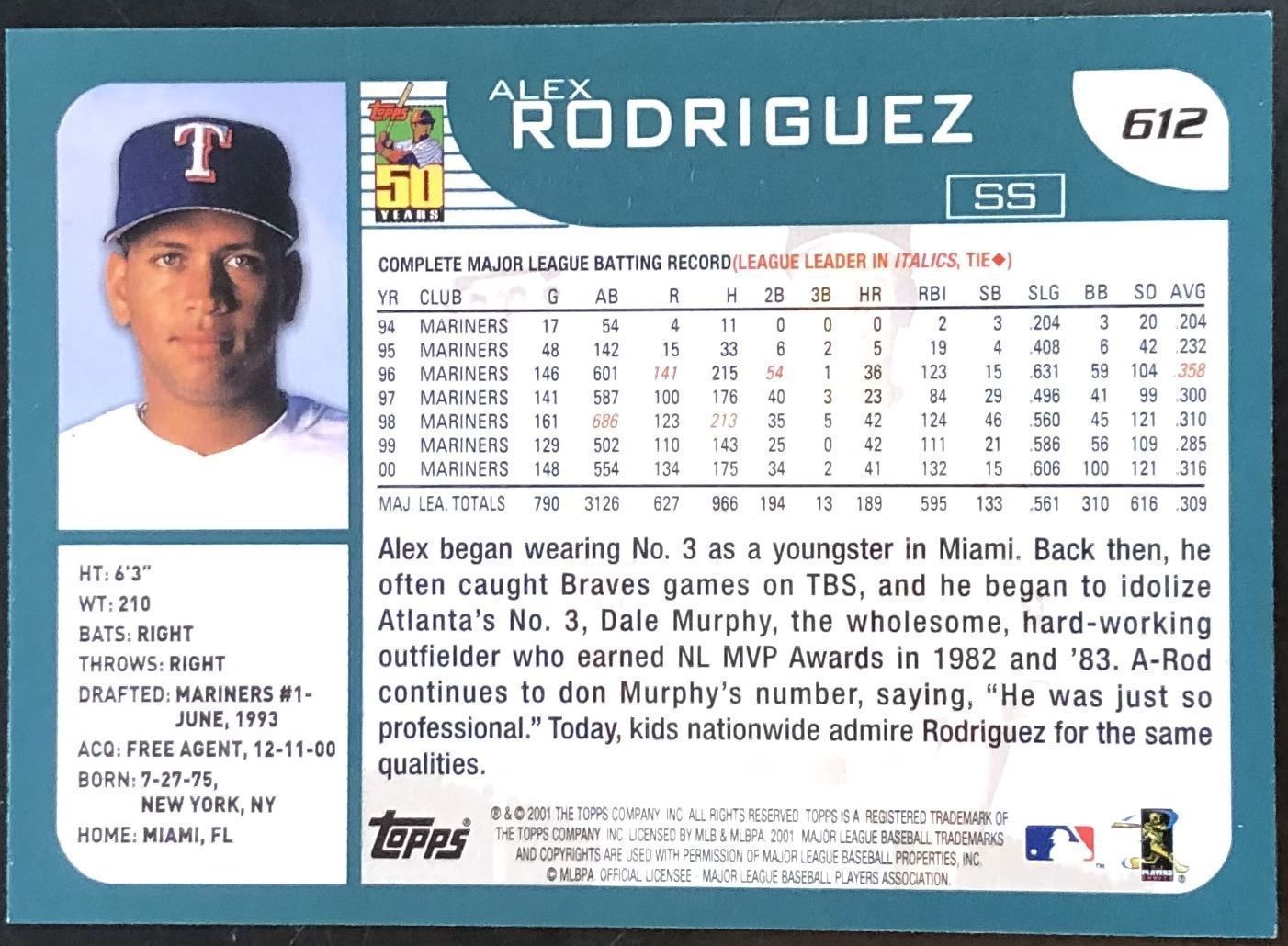 Lot 196 2001 TOPPS ALEX RODRIGUEZ