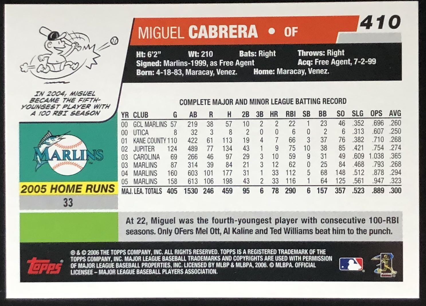 Lot 219 2006 TOPPS MIGUEL CABRERA