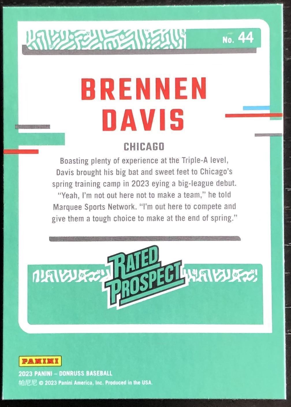 Lot 234 2023 DONRUSS BRENNAN DAVIS ROOKIE CARD