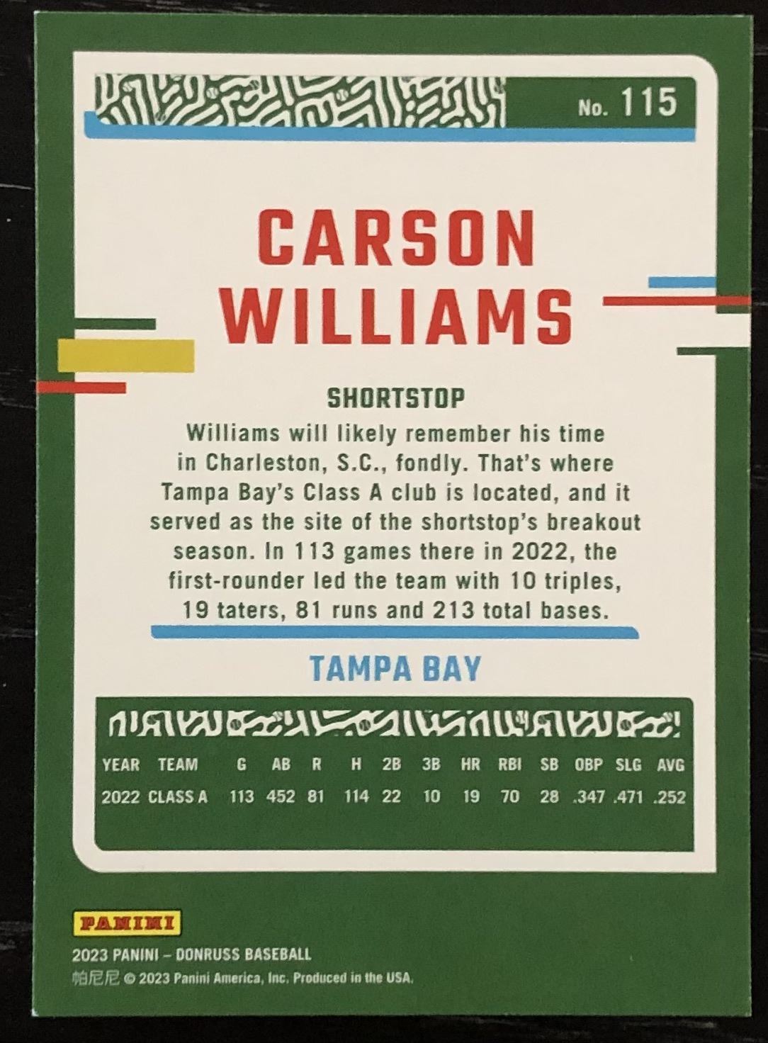 Lot 235 2023 DONRUSS CARSON WILLIAMS ROOKIE CARD