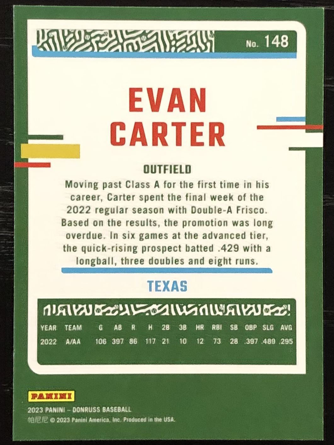 Lot 238 2023 DONRUSS EVAN CARTER ROOKIE CARD