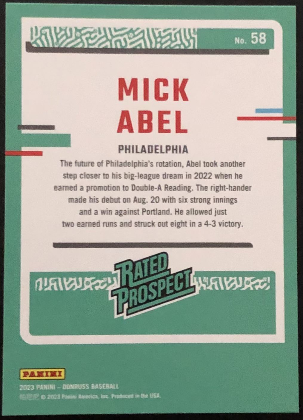 Lot 241 2023 DONRUSS MICK ABEL ROOKIE CARD