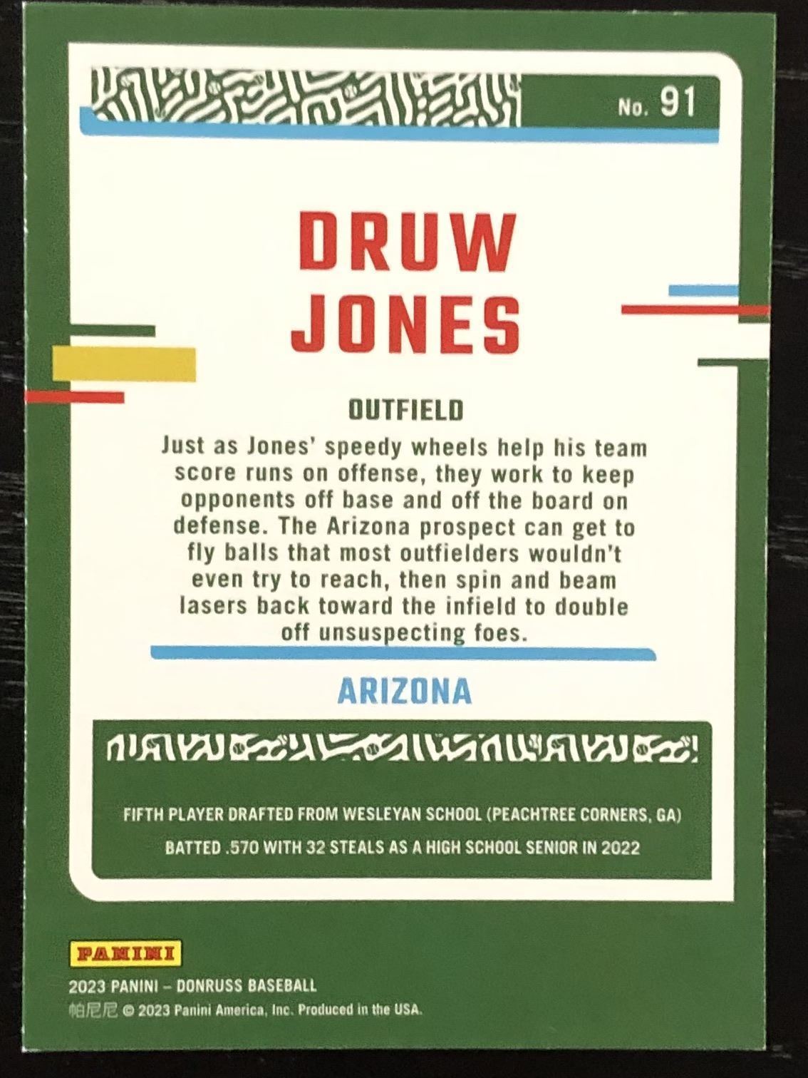 Lot 242 2023 DONRUSS RETRO DRUW JONES ROOKIE CARD