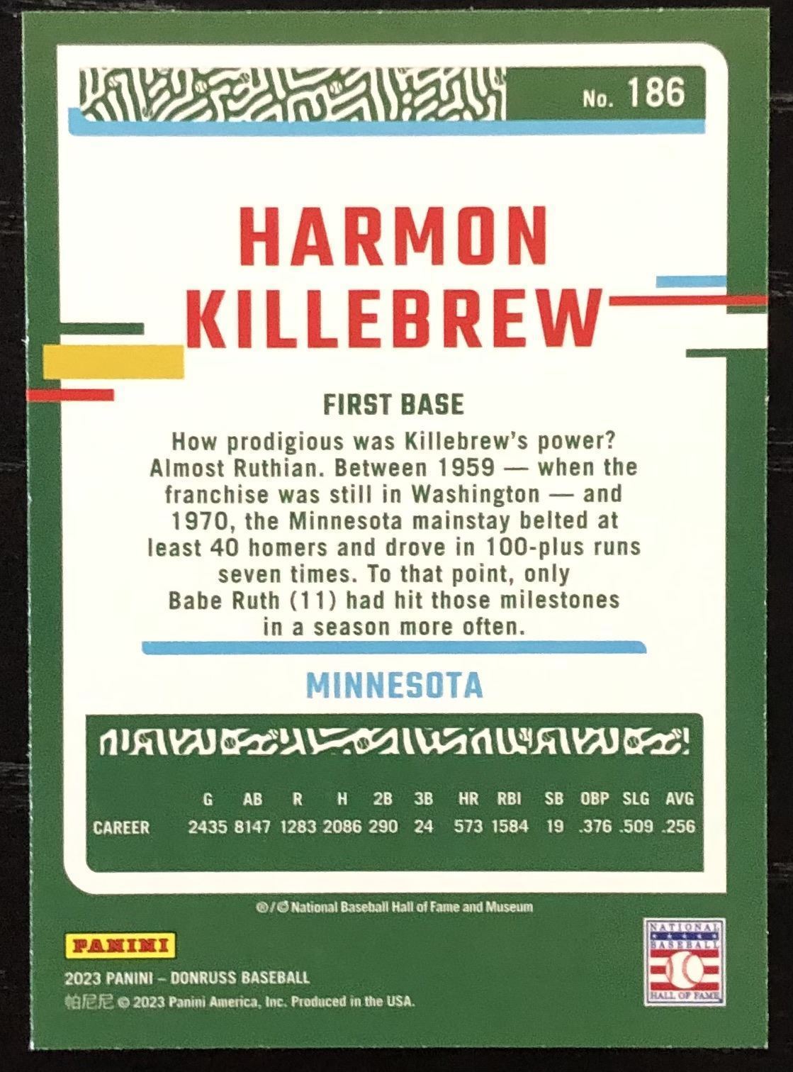 Lot 249 2023 DONRUSS YELLOW SPLASH HARMON KILLEBREW (HOF)