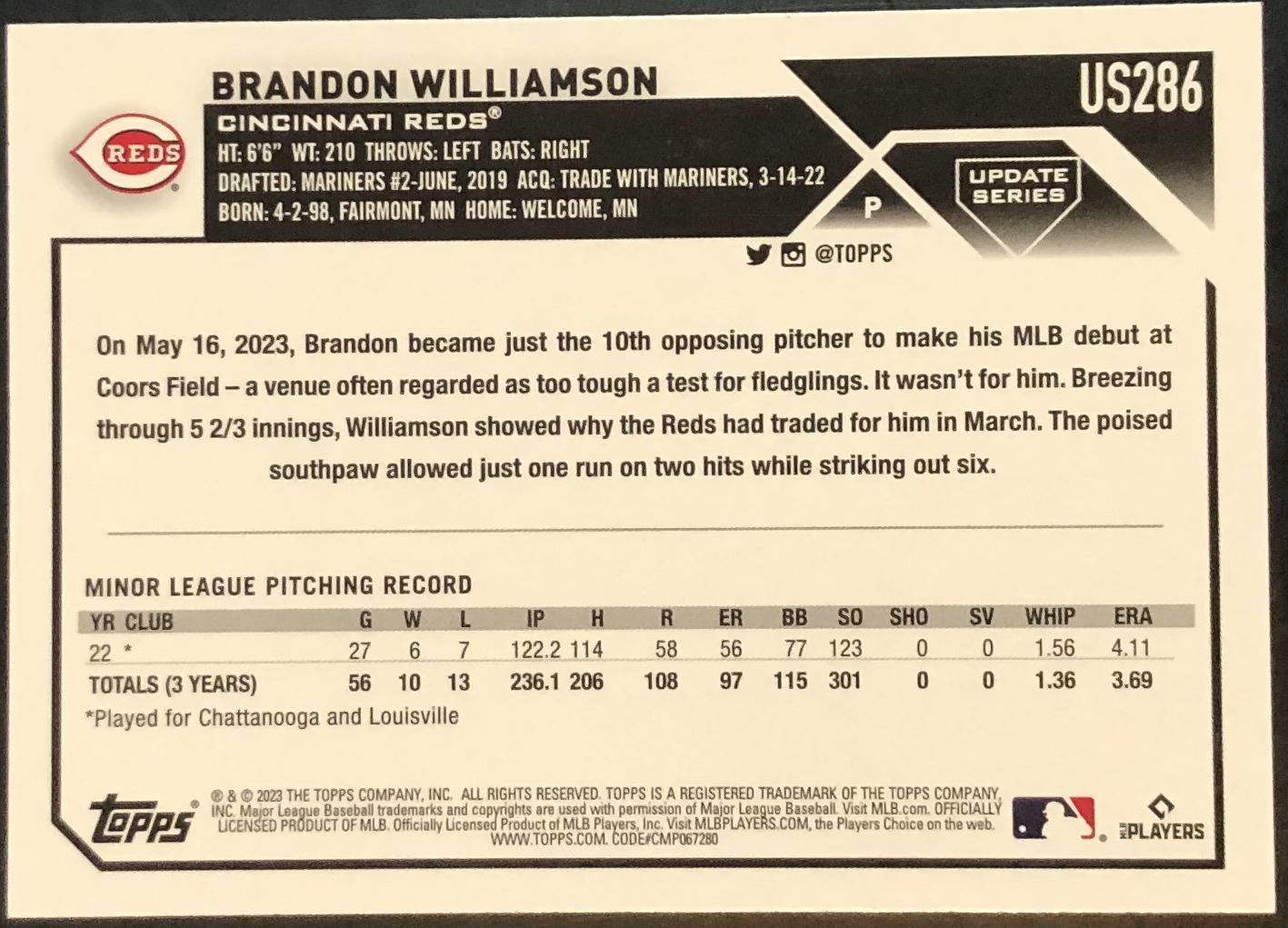Lot 253 2023 TOPPS BRANDON WILLIAMSON ROOKIE CARD
