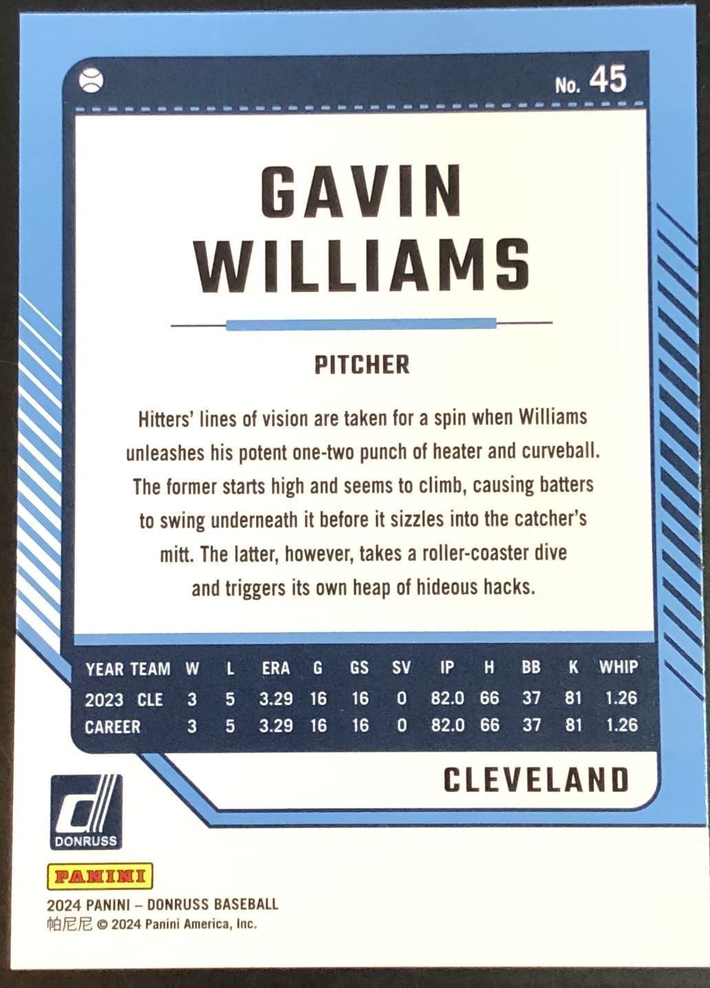 Lot 255 2024 DONRUSS GAVIN WILLIAMS ROOKIE CARD