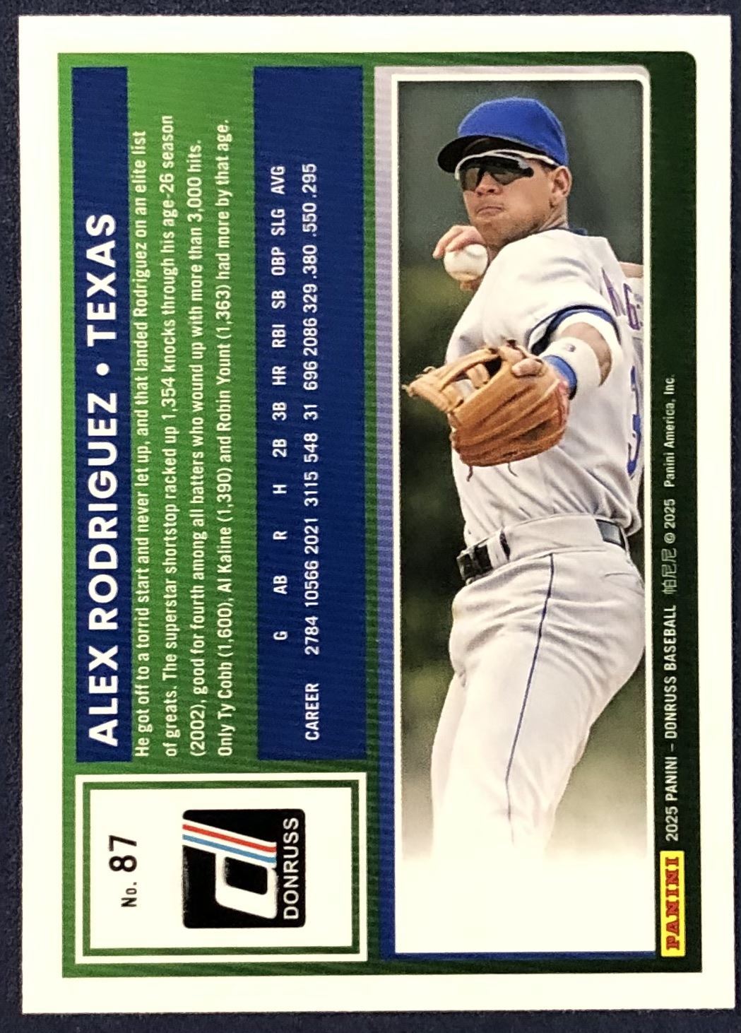 Lot 256 2025 DONRUSS ALEX RODRIGUEZ CARD