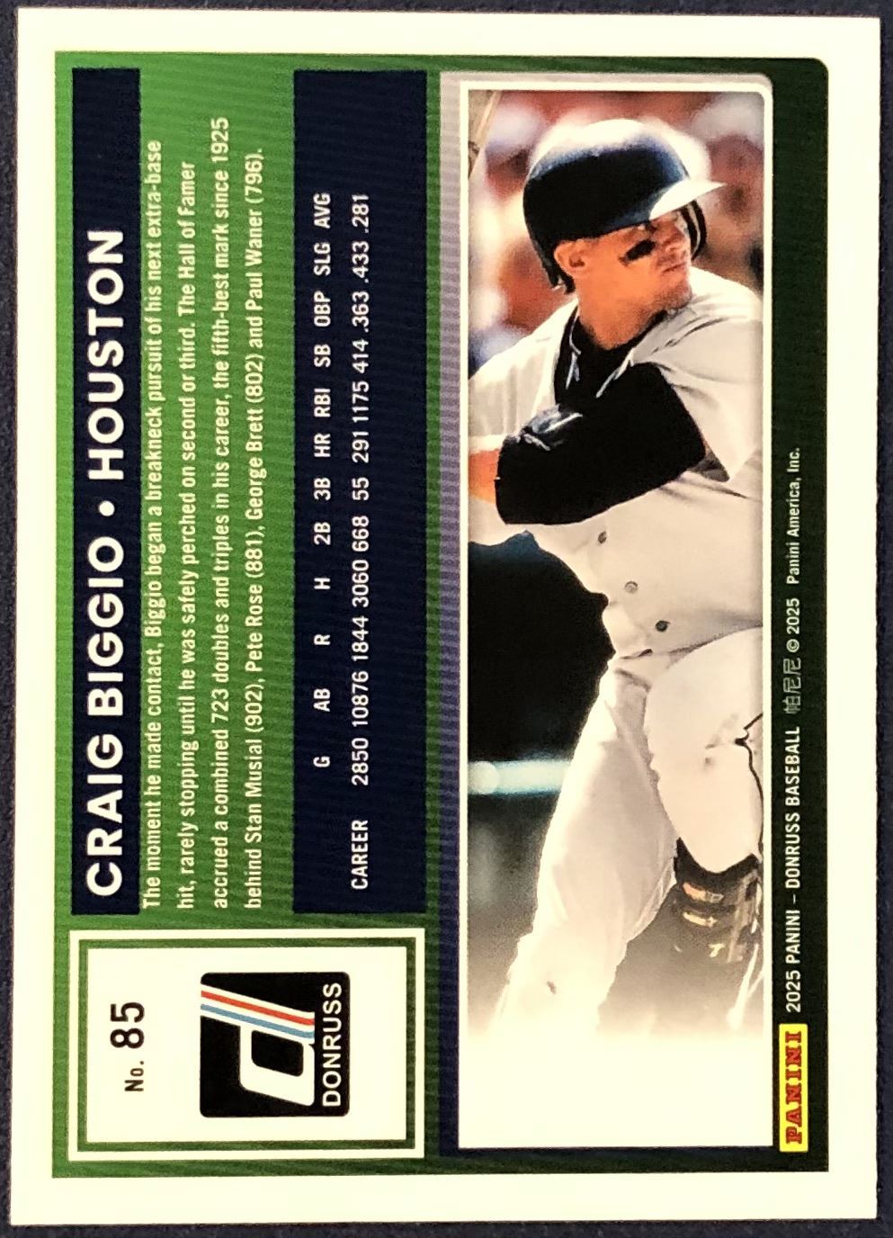 Lot 265 2025 DONRUSS CRAIG BIGGIO (HOF) YELLOW FLASH CARD