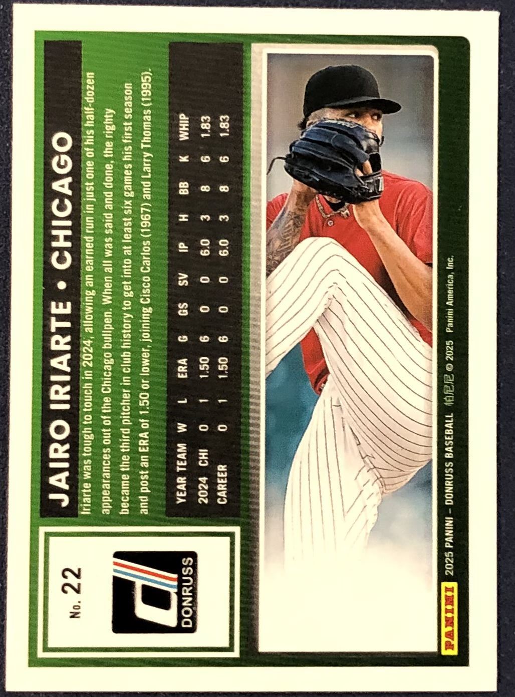 Lot 272 2025 DONRUSS JAIRO IRIARTE ROOKIE CARD