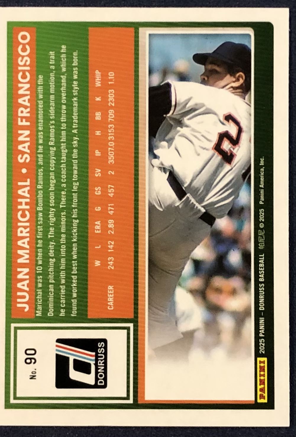 Lot 280 2025 DONRUSS JUAN MARICHAL YELLOW FLASH (HOF)