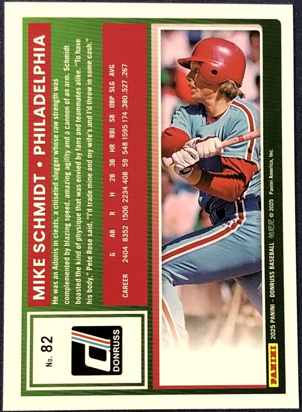 Lot 288 2025 DONRUSS MIKE SCHMIDT (HOF) CARD