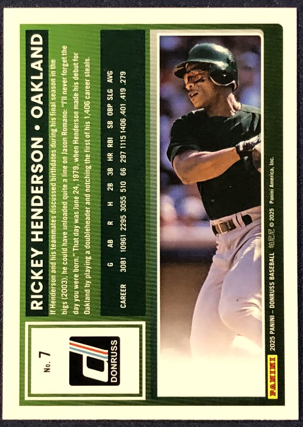 Lot 298 2025 DONRUSS RICKEY HENDERSON YELLOW FLASH (HOF)