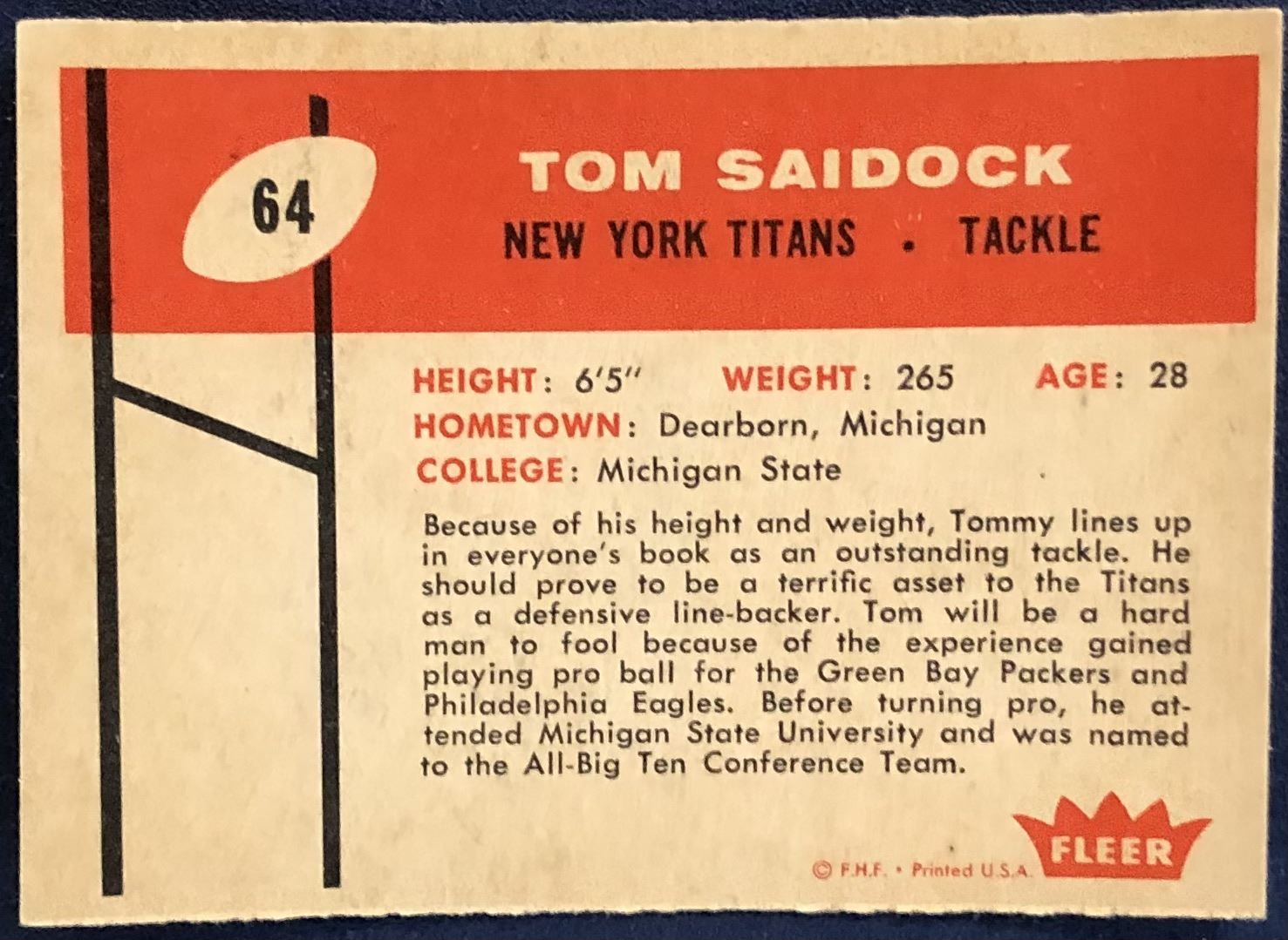 Lot 310 1960 FLEER TOM SAIDOCK