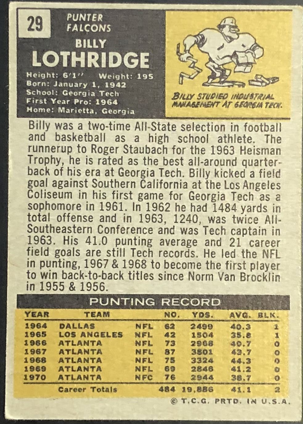 Lot 318 1971 TOPPS WONDER BREAD BILLY LOTHRIDGE