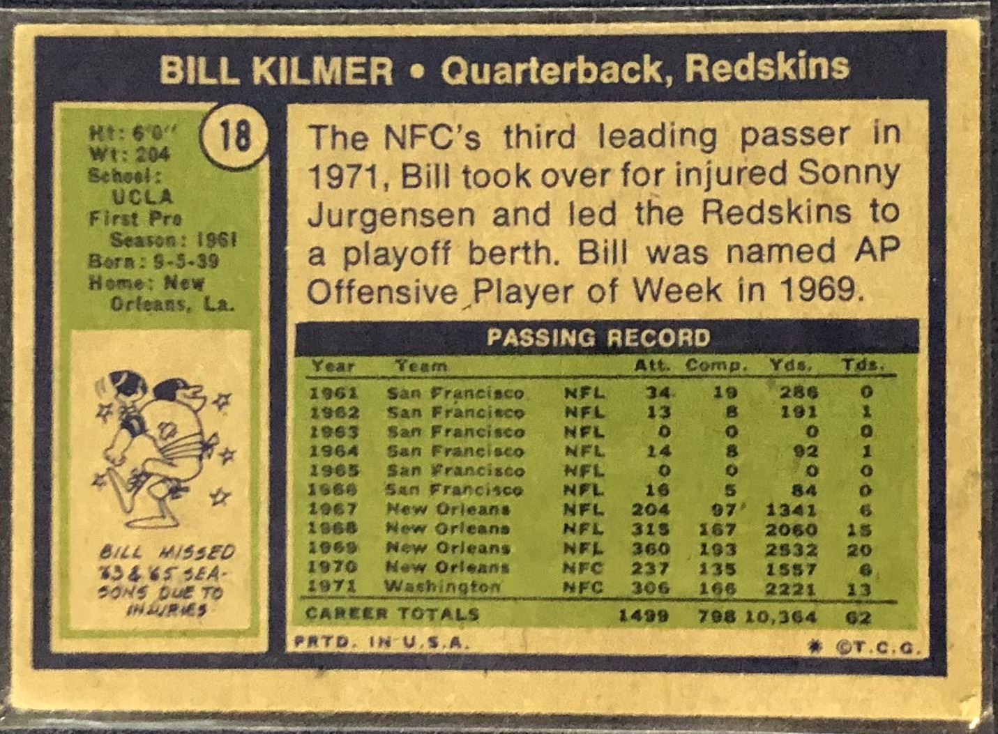 Lot 321 1972 TOPPS NFL BILLY KILMER