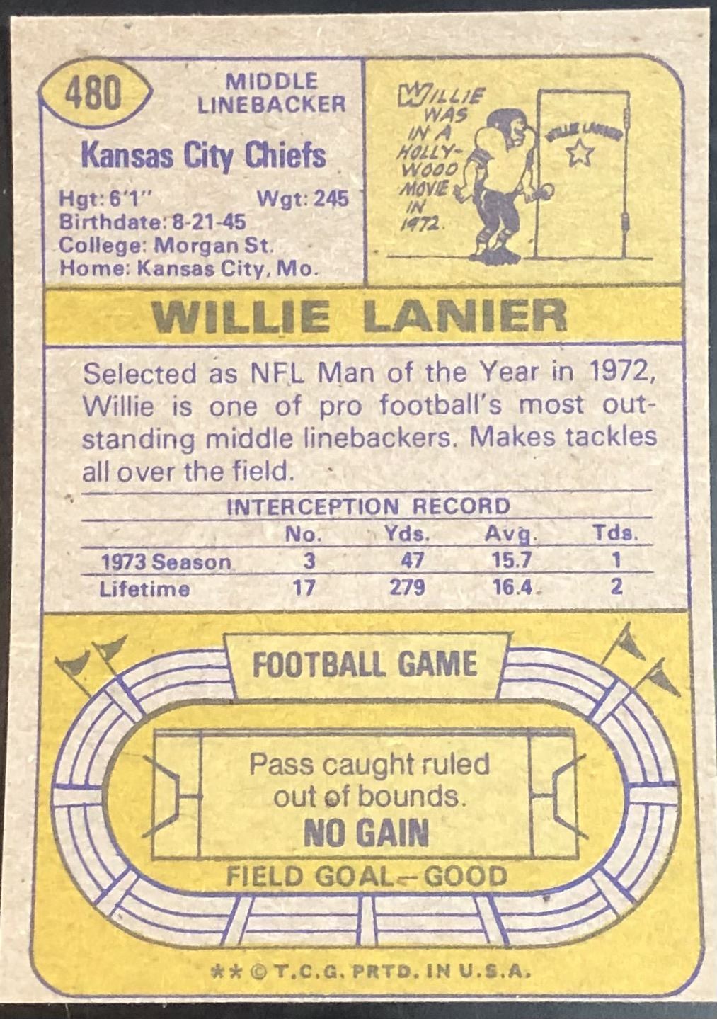 Lot 324 1974 TOPPS WILLIE LANIER (HOF)