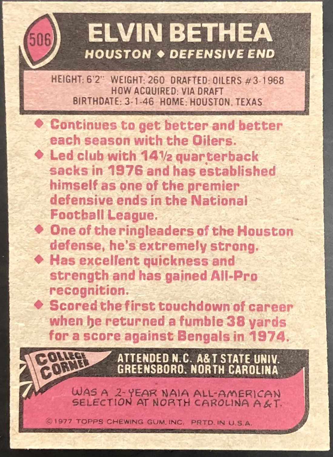 Lot 338 1977 TOPPS NFL ELVIN BETHEA (HOF)