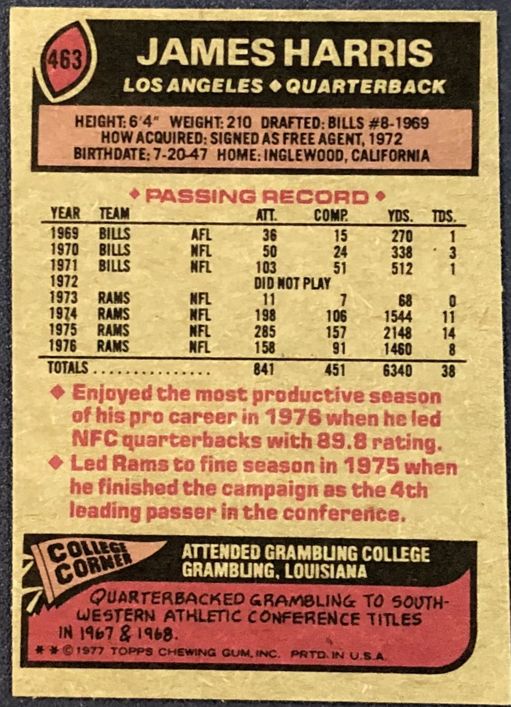 Lot 341 1977 TOPPS NFL JAMES HARRIS