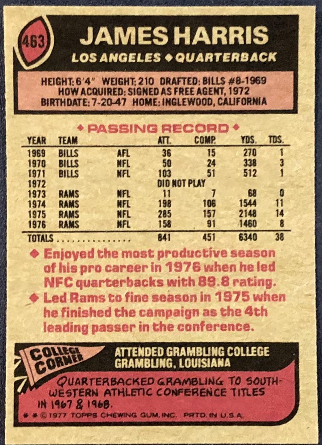 Lot 342 1977 TOPPS NFL JAMES HARRIS