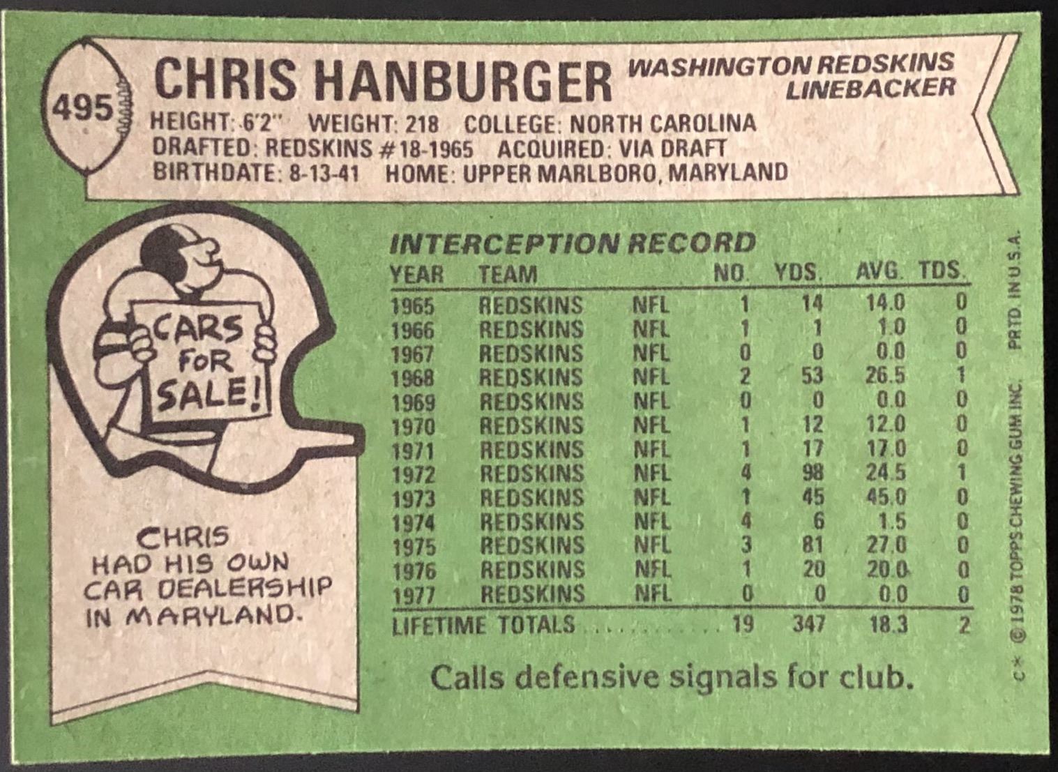 Lot 350 1978 TOPPS CHRIS HANBURGER (HOF)
