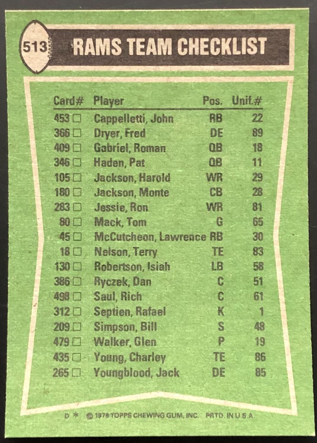 Lot 351 1978 TOPPS JACK YOUNGBLOOD (HOF)