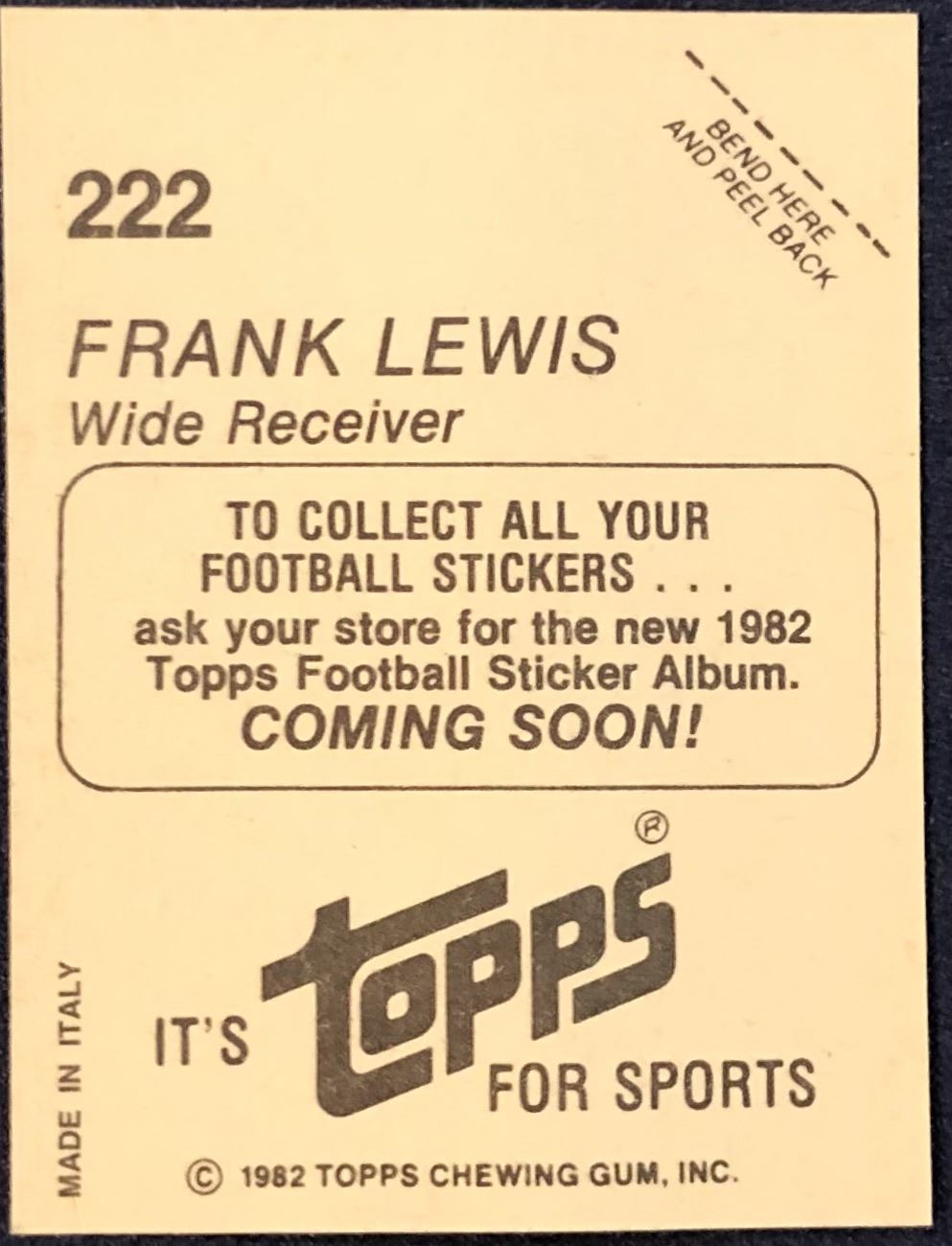 Lot 356 1981 TOPPS FRANK LEWIS