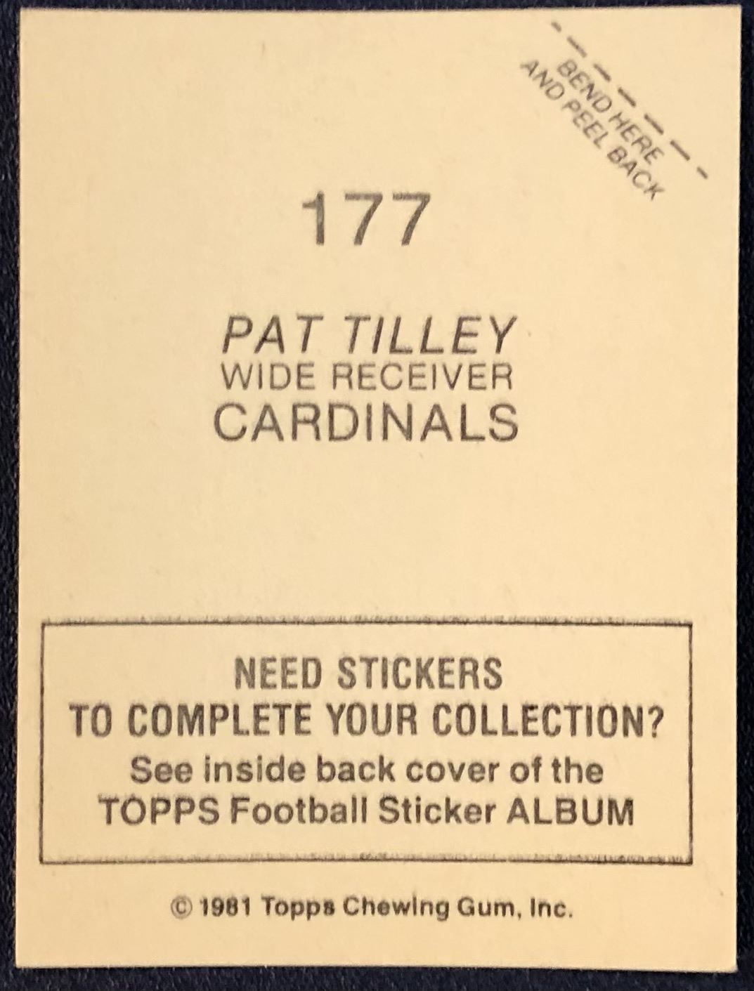 Lot 361 1981 TOPPS PAT TILLEY