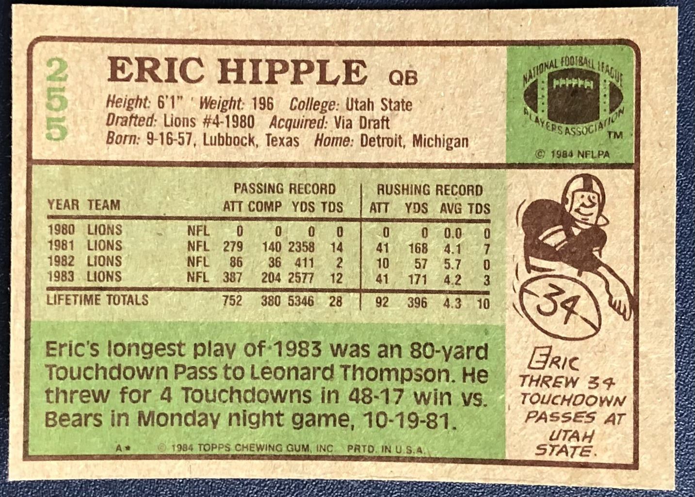 Lot 365 1984 TOPPS ERIC HIPPLE
